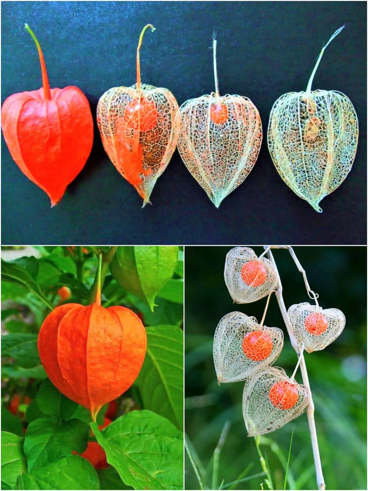 ♥️เมื่อเวลาผ่านไปในฤดูหนาว กลีบเลี้ยงที่เป็นเหมือนกระดาษนี้จะค่อยๆ สลายตัวไป เหลือเพียงโครงร่างของเส้นใยที่ละเอียดอ่อน เผยให้เห็นผลเบอร์รี่สีส้มแดงที่อยู่ข้างใน ซึ่งมีความสวยงามอีกแบบ