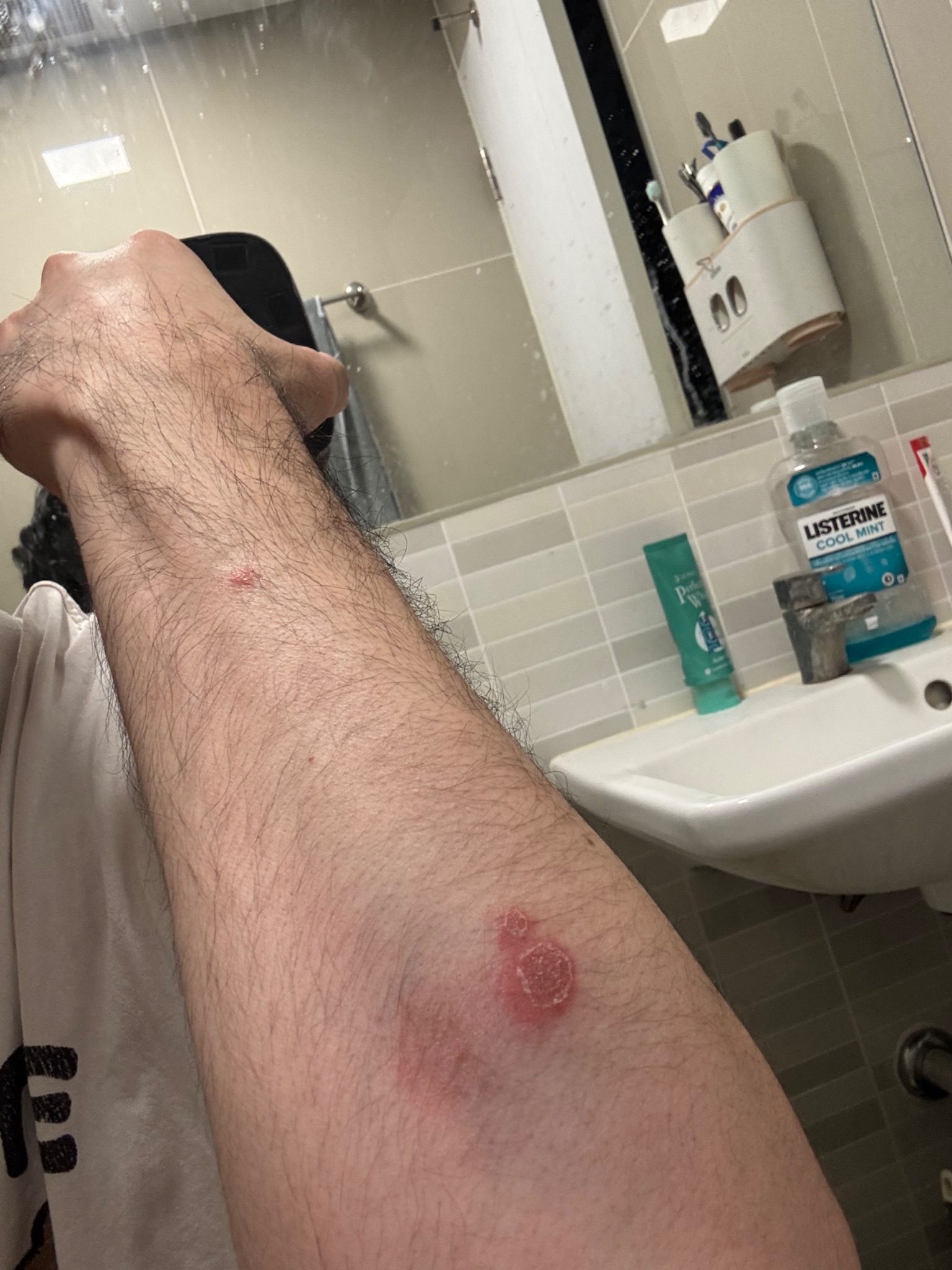 สวัสดีครับ ตั้งแต่เดือนเมษายน ผิวหนังของผมมีปัญหา ชอบมีเส้นแดงยาวๆ คล้ายรอยเกา ที่แขน ขา ผมได้ไปปรึกษาหมอแต่เนื่องจากแผลคล้ายรอยเกา จึงอธิบายกับหมอยากหน่อย แต่ขอยืนยันว่าไม่ได้เกาแน่นอน จากรูปก็นั่งทำ