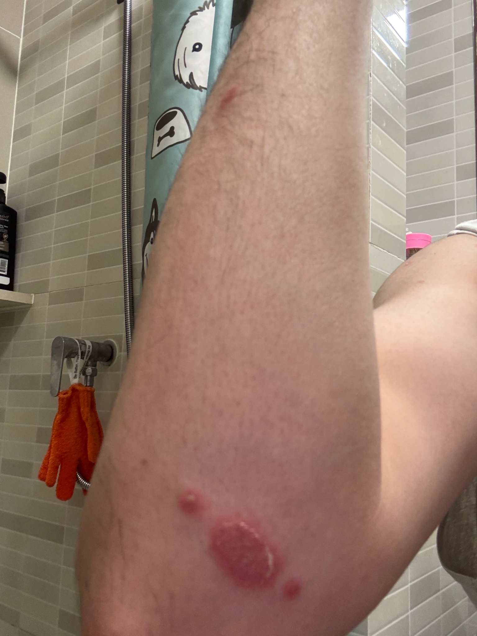 เริ่มเป็นได้ประมาณ 3 วันค่ะ วันแรกเป็นตุ่มคล้ายยุงกัด คันมาก วันที่ 2 เริ่มแดง ลามมาถึงแขน เลยไปหาหมอ ก็ถามว่าแพ้อะไรหรือเปล่า ก็ไม่ทราบเหมือนกันเพราะปกติ ไม่แพ้อาหารอะไรเลย ทานได้ทุกอย่าง หมอก็ฉีด