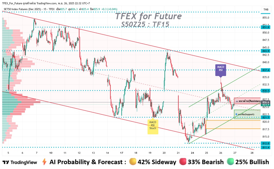⚔️แนวต้าน (Resistant) : 826-828 (จุดร่วม 7 Indicators)