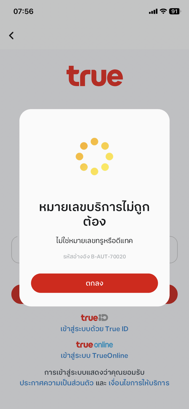 ลงทะเบียนแอพทรูไม่ได้ ทั้งที่เป็นซิมของทรู