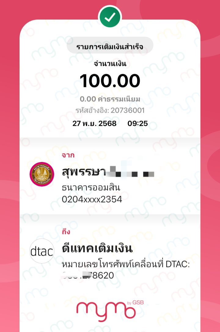 เติมเงิน Dtac ผ่านแอปธนาคาร 2 รอบ แต่เงินไม่เข้า