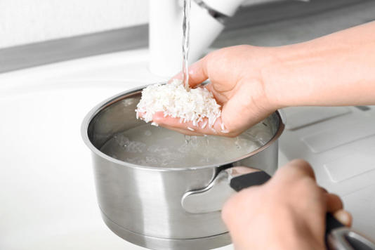 ซาวข้าวเบาๆ 2-3 ครั้ง แล้วเทน้ำทิ้ง