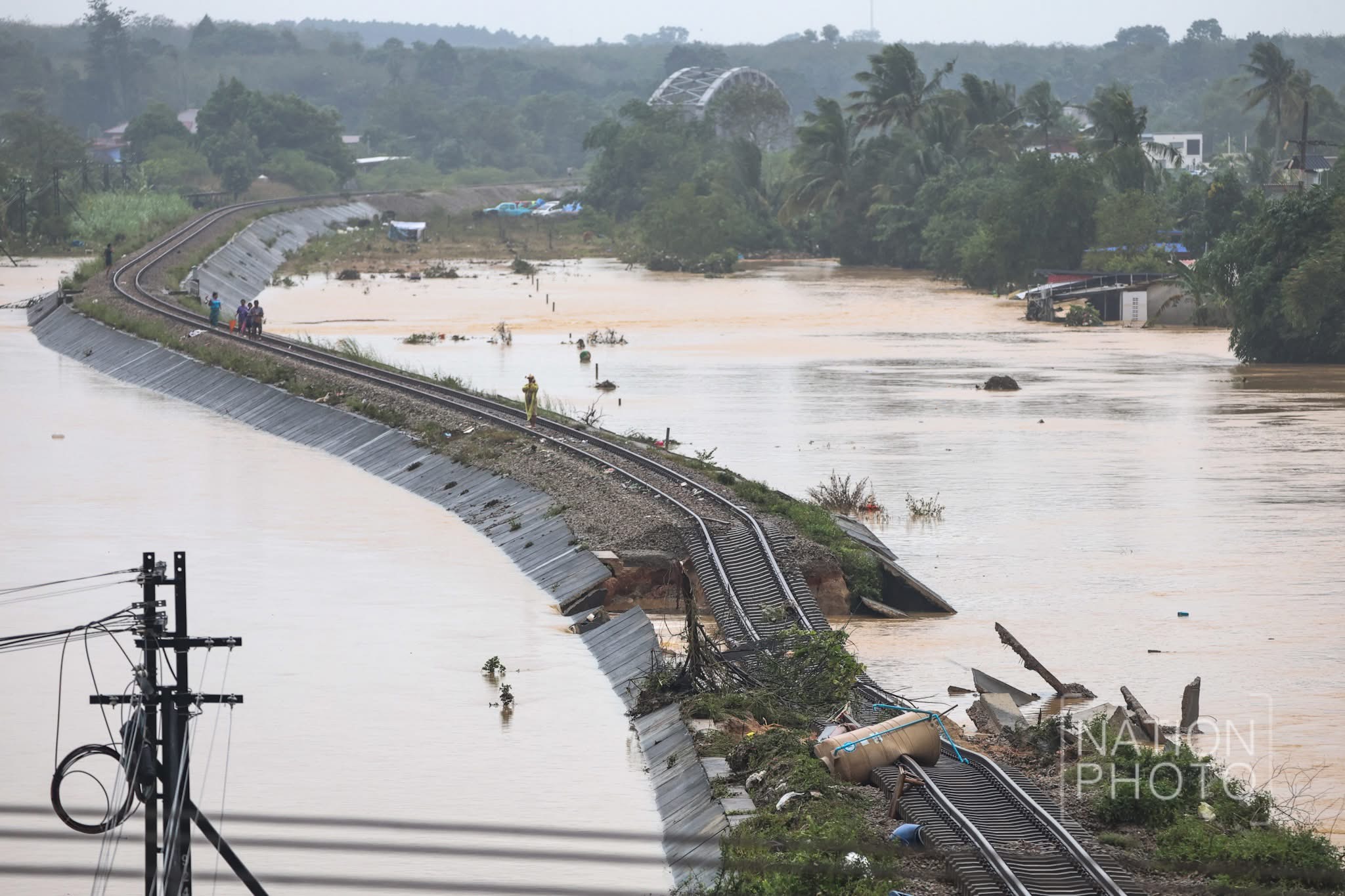น้ำซัดทางรถไฟสายใต้ขาด รฟท. งดเดินรถจนกว่าสถานการณ์จะคลี่คลาย