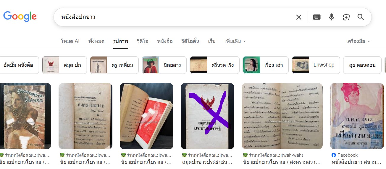 หนังสือปกขาว เป็นหนังสือที่มีการบรรยายโดยพิสดารพันลึก มีรูปภาพอยู่กลางเล่ม ทำให้วัยรุ่นสมัยนั้นอ่านแล้วมีอารมณ์ได้