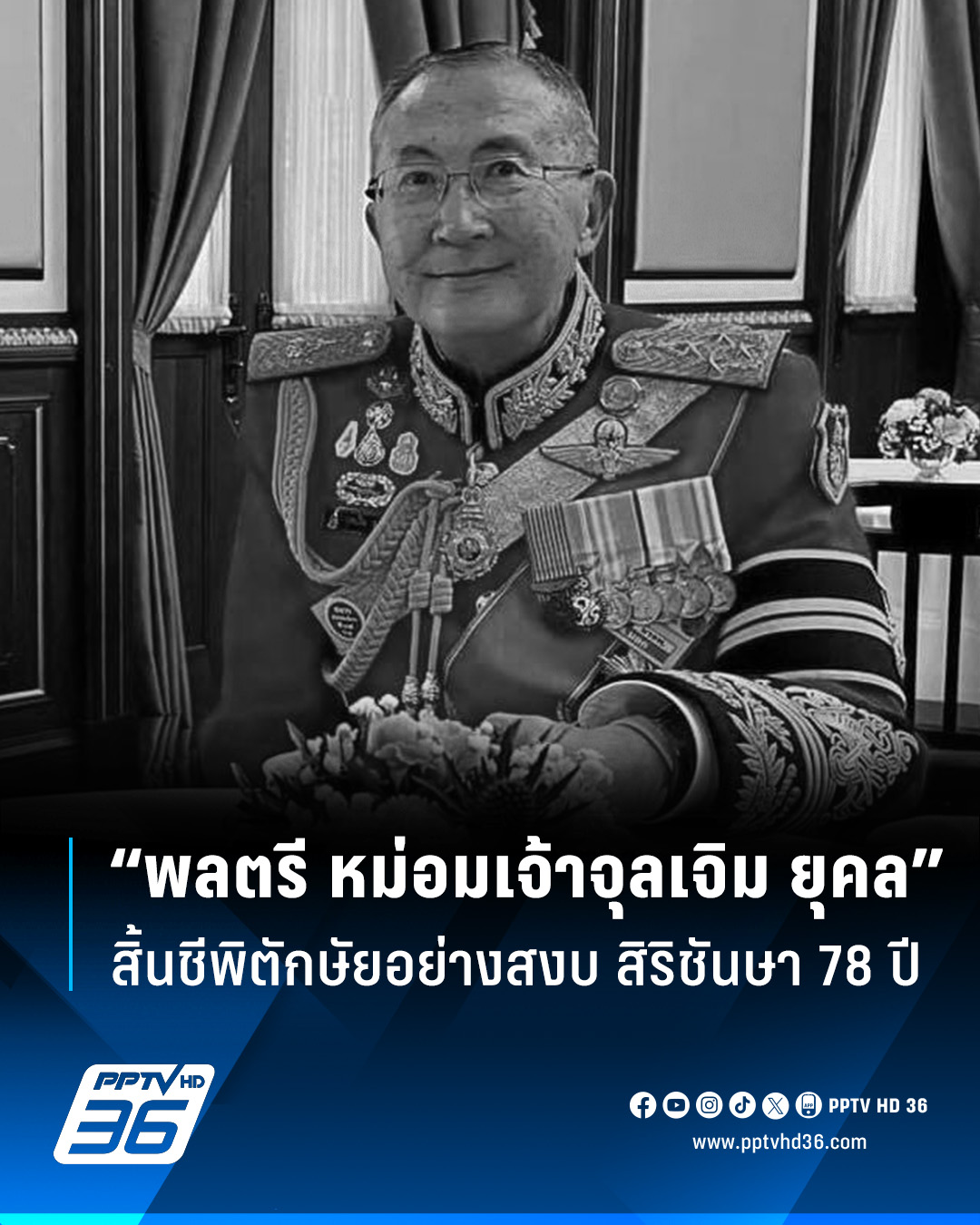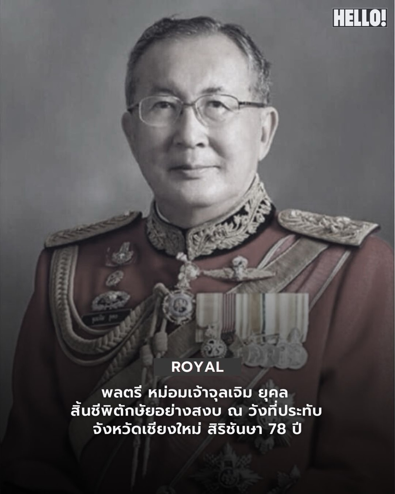 ⚫ วันนี้ 27 พฤศจิกายน 2568 เวลา 08.13 น. พลตรี หม่อมเจ้าจุลเจิม ยุคล สิ้นชีพิตักษัยอย่างสงบ ณ วังที่ประทับ อำเภอแม่ริม จังหวัดเชียงใหม่ สิริชันษา 78 ปี