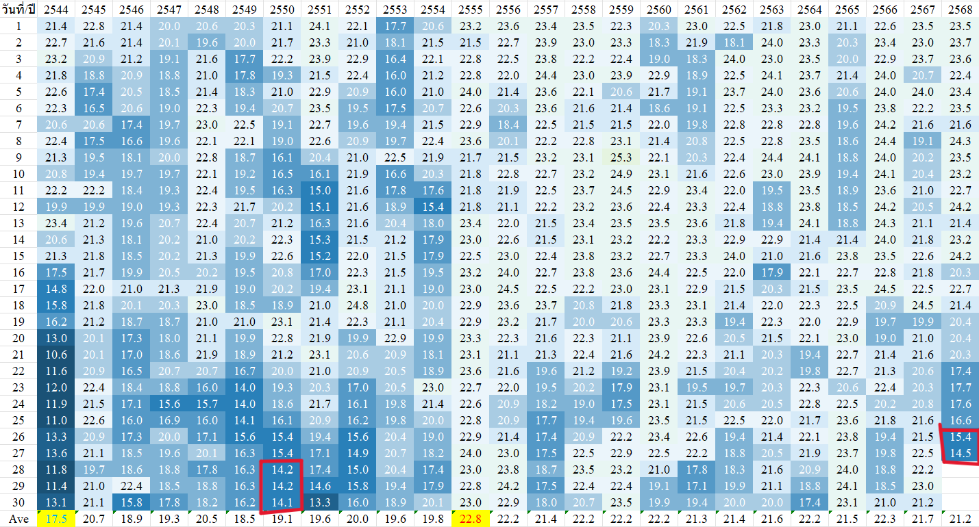 ผมเคยนำเสนอว่า พฤศจิกายน ไม่ได้มีอากาศหนาวเย็นมานานเท่าไหร่แล้ว (ตามเกณฑ์คือต่ำกว่า 16.0)