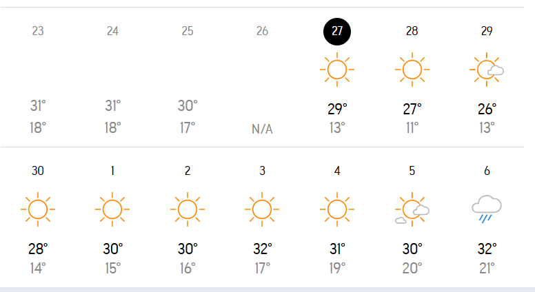 ภาพที่ 2 แสดงผลการพยากรณ์อากาศของ AccuWeather ของเมืองเชียงใหม่