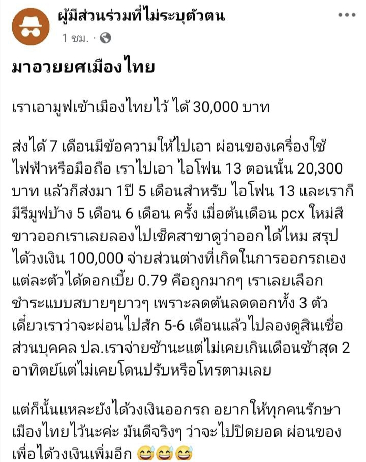 ไฟแนนซ์เมืองไทยเห็นบ้านฟ้าอวยกันตึมว่าพนักงานบริการดี มีน้ำ มีน้ำบริการเราไปจริงๆไม่เห็นจะได้เลยบอกมีผ่อนทองเราเข้าไปสอบถาม พนักงานบอกไม่มี ทั้งๆที่เคยมีประวัติเอารถเข้านะ สงสัยต้องไปติดต่อสาขาเดิม #ส