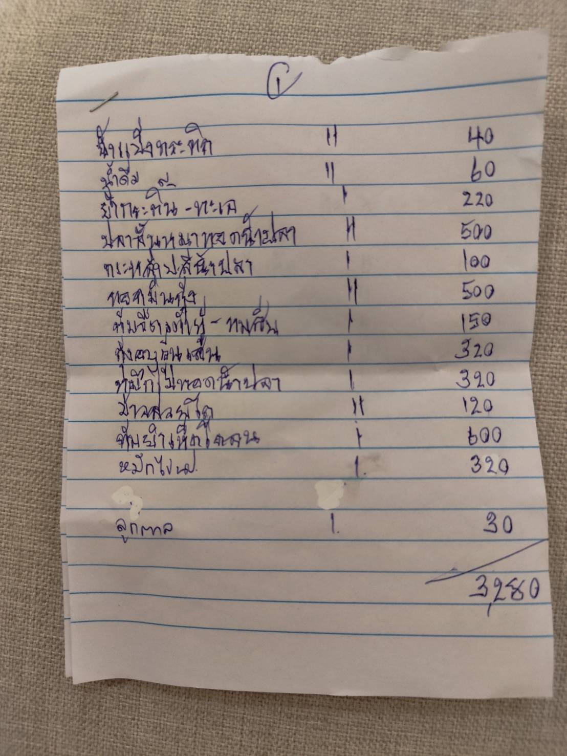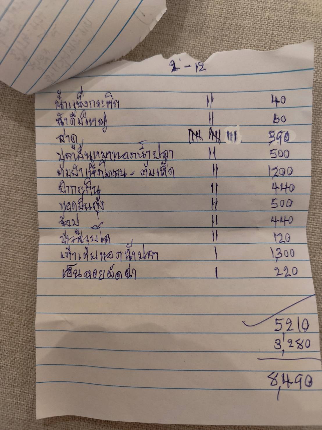 รวมค่าอาหารทั้งหมดในมื้อนี้ 8,490 บาท