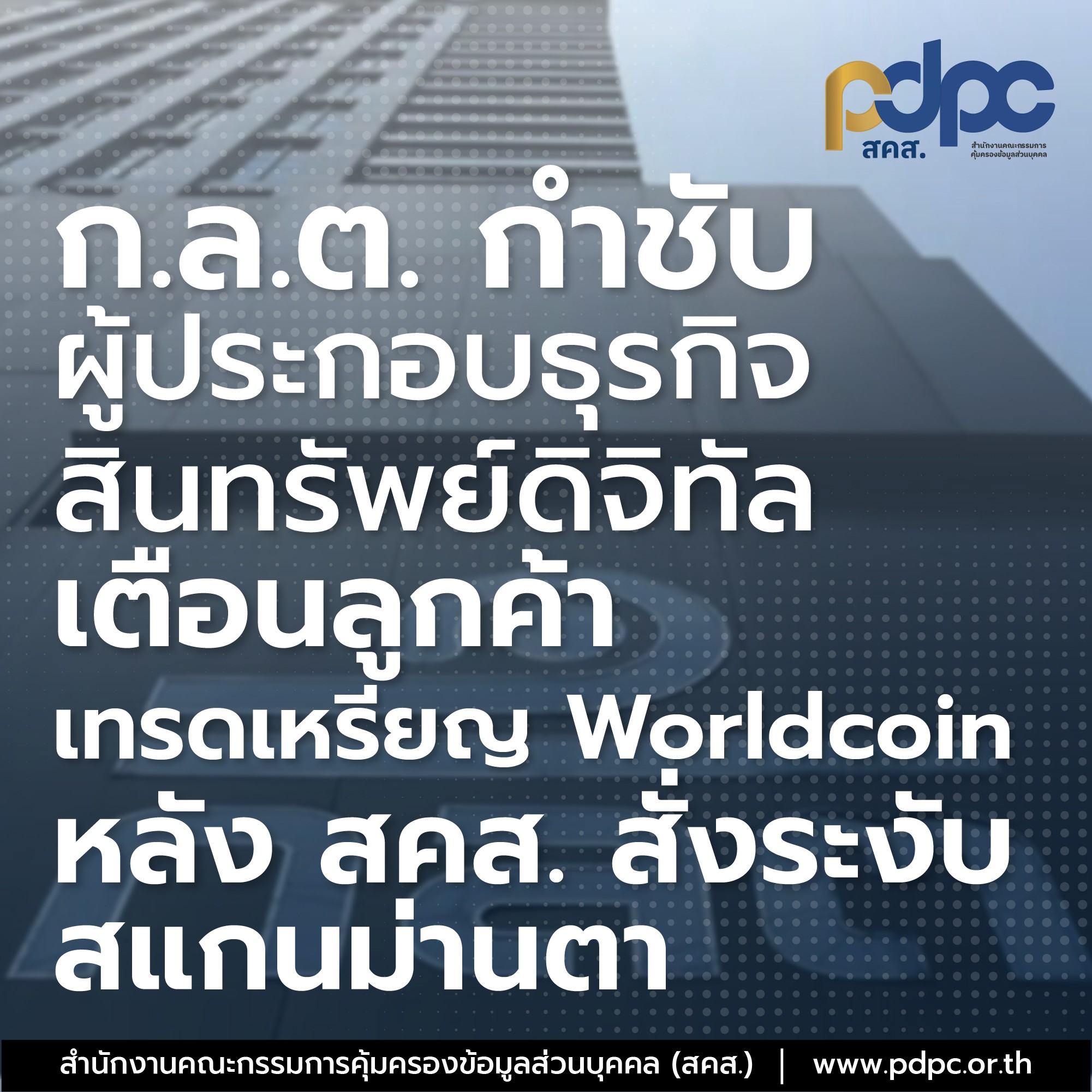 สำนักงานคณะกรรมการคุ้มครองข้อมูลส่วนบุคคล (สคส.) หรือ PDPC สั่ง “World โครงการสแกนม่านตาเพื่อยืนยันความเป็นมนุษย์” ระงับการเก็บรวบรวมข้อมูลม่านตาและให้ลบหรือทำลายข้อมูลทั้งหมดของ