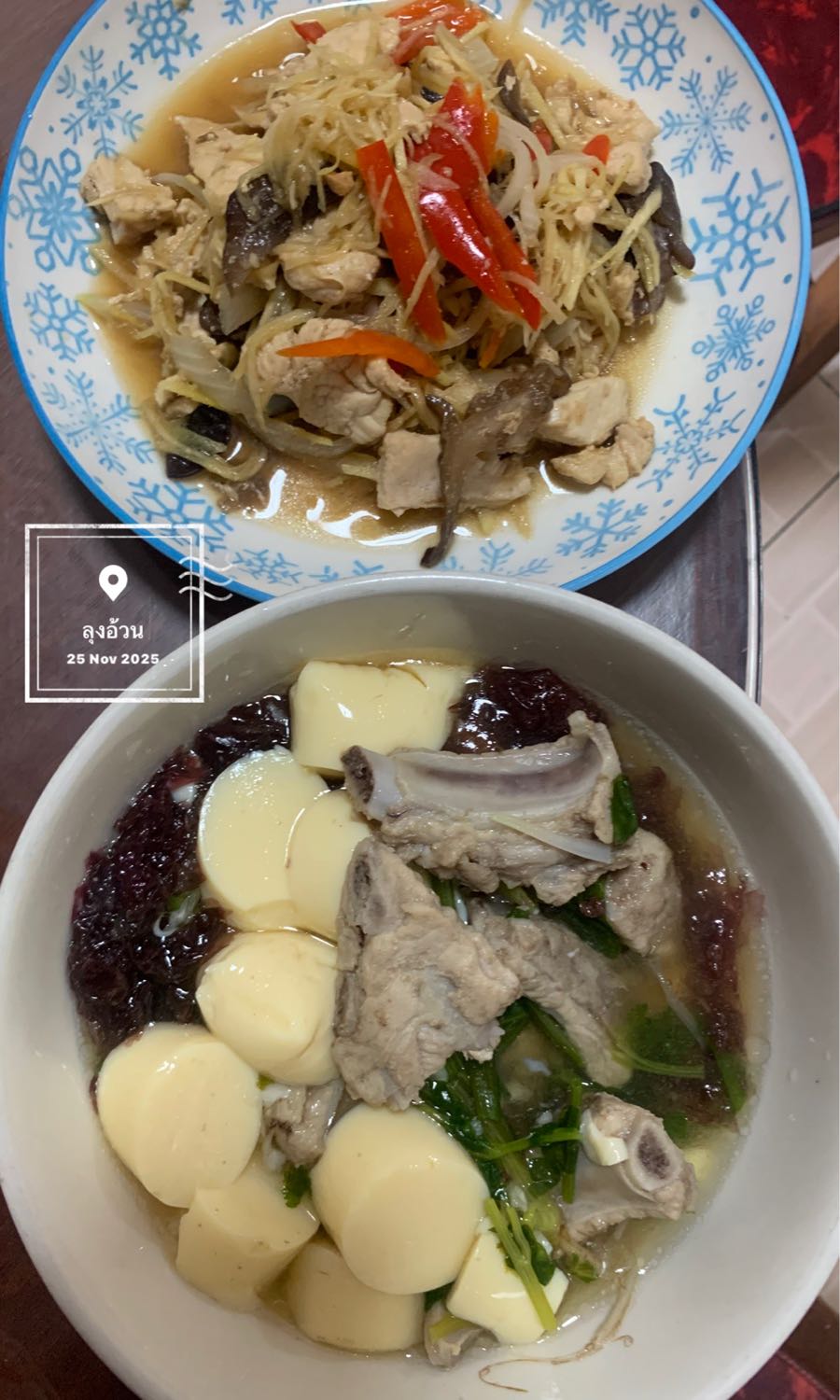 ไก่ผัดขิง & แกงจืดเต้าหู้ไข่ใส่สาหร่ายใส่ซี่โครงหมู