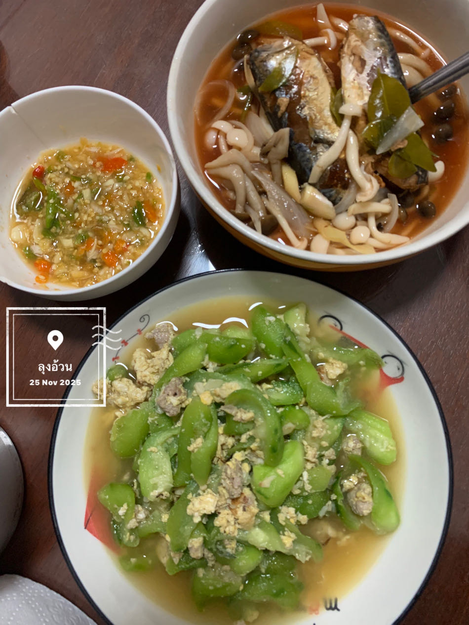 ผัดบวบใส่ไข่ใส่หมูสับ & ต้มยำปลากระป๋อง
