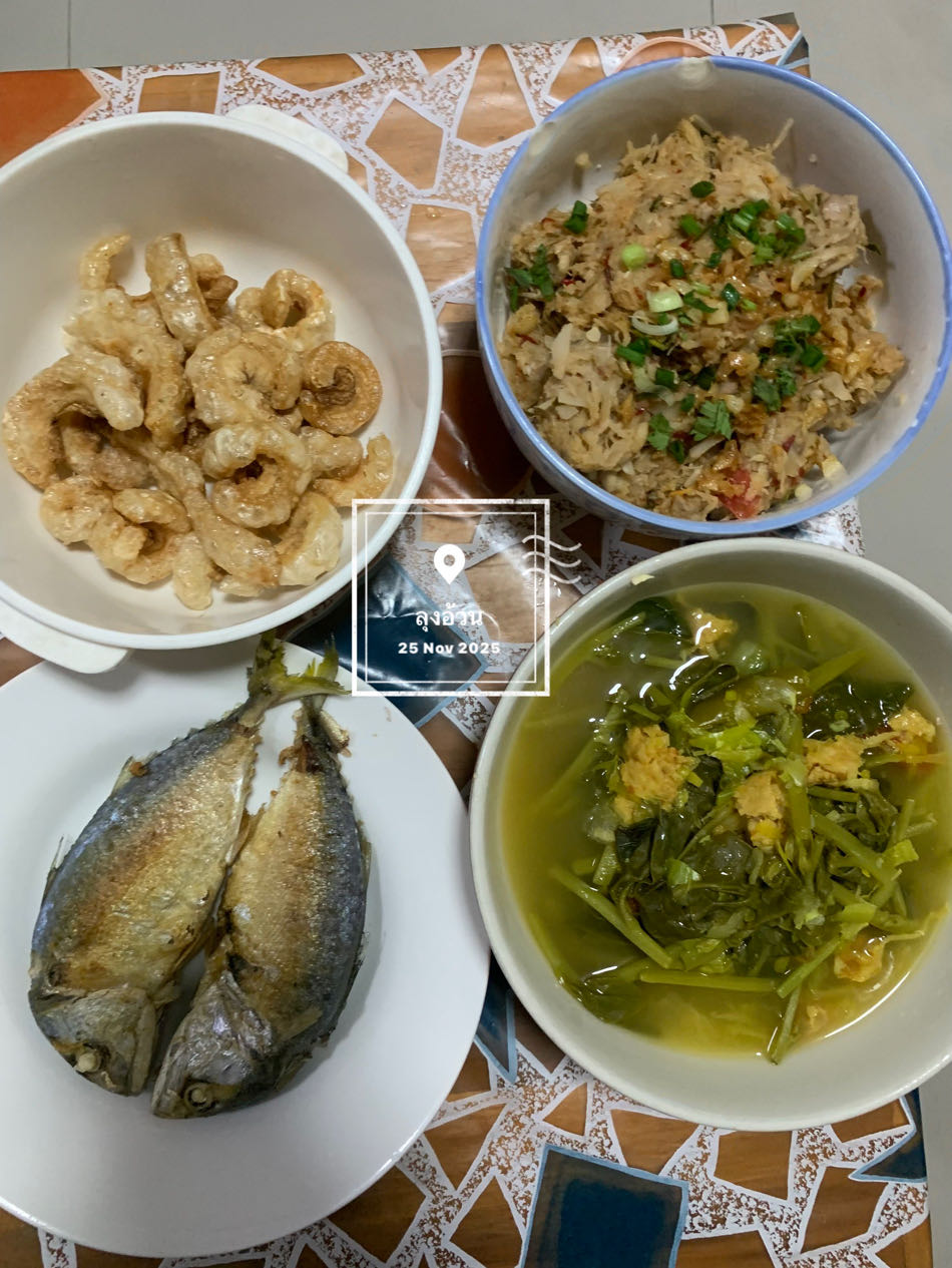 แกงผักบุ้งเมืองใส่กระดูกดูก & แกงมะหนุน & ปลาทูทอด & แคบหมู