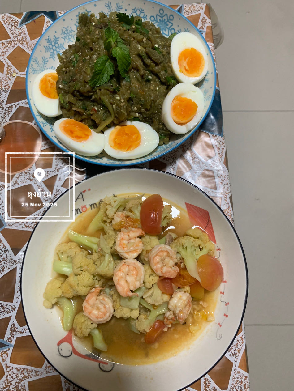 ตำมะเขือยาว & ไข่ต้ม & ผัดกะหล่ำดอกกุ้ง