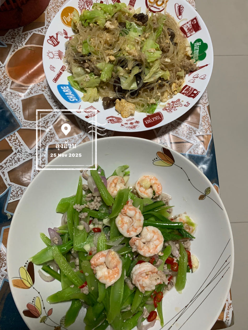 ยำก้านคะน้าหมูสับกุ้งสุก & ผัดวุ้นเส้นโป๊ยเซียน