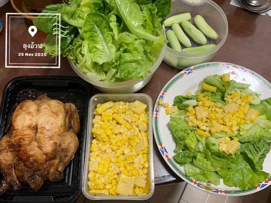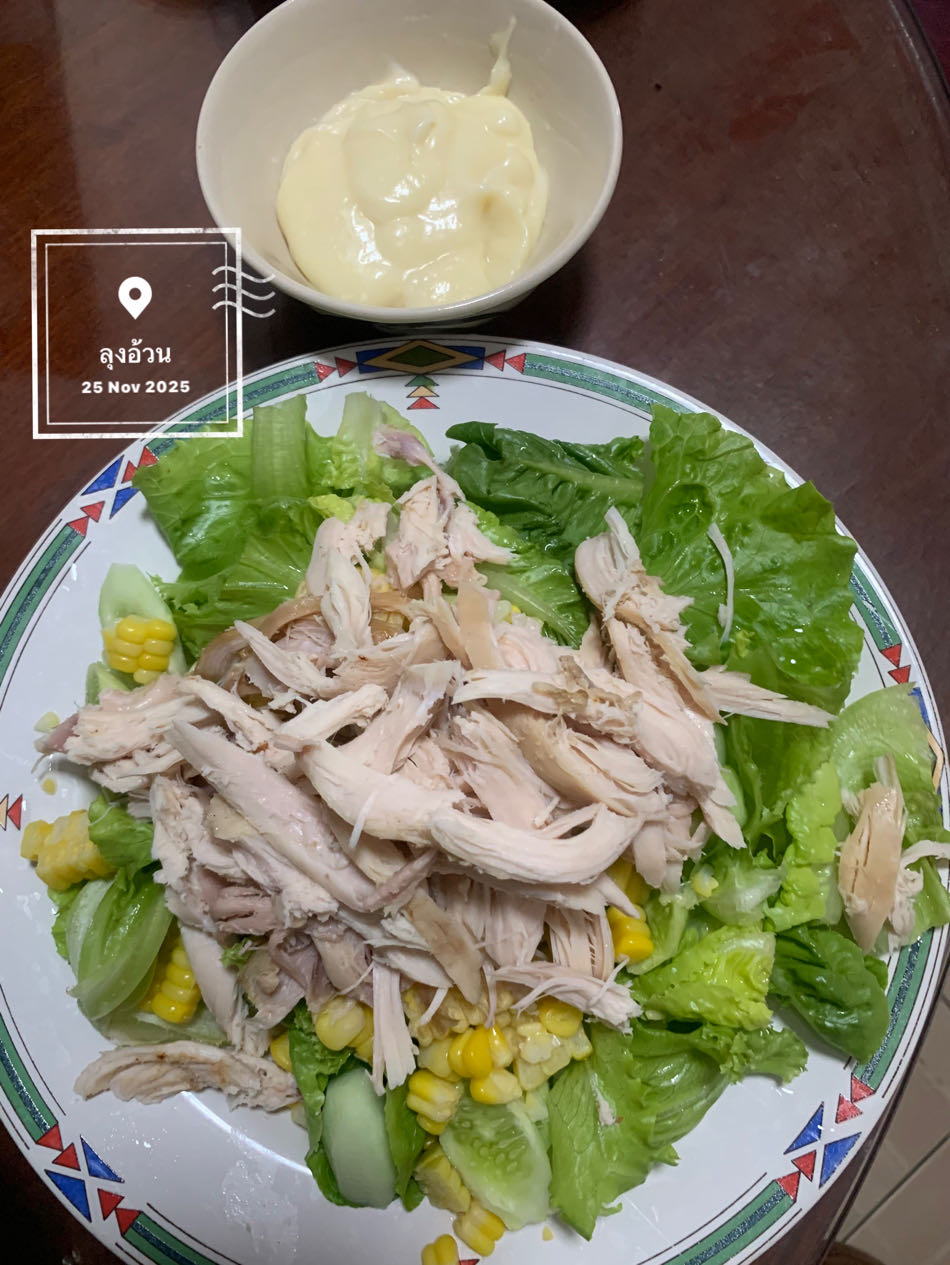 สลัดไก่ใส่ข้าวโพดหวาน