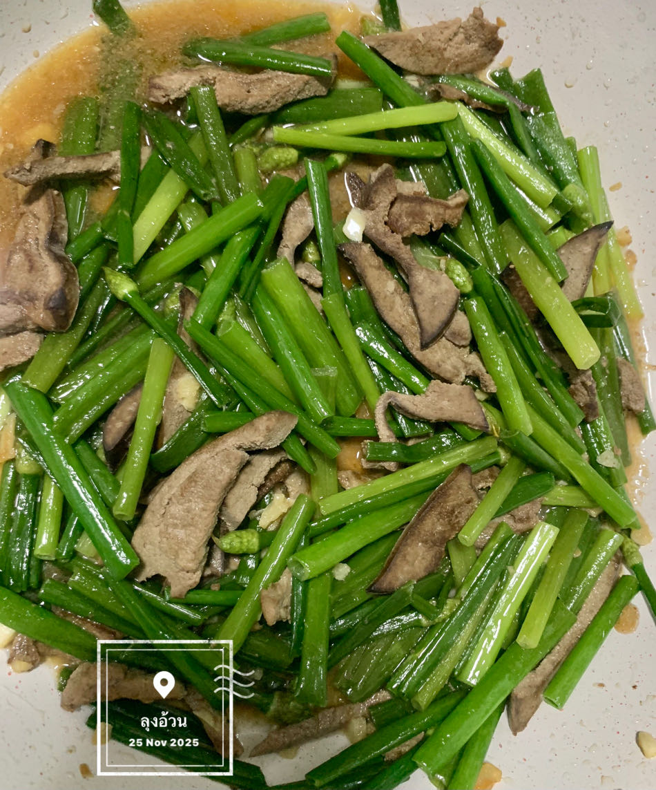 ผัดดอกหอมใส่ตับหมู