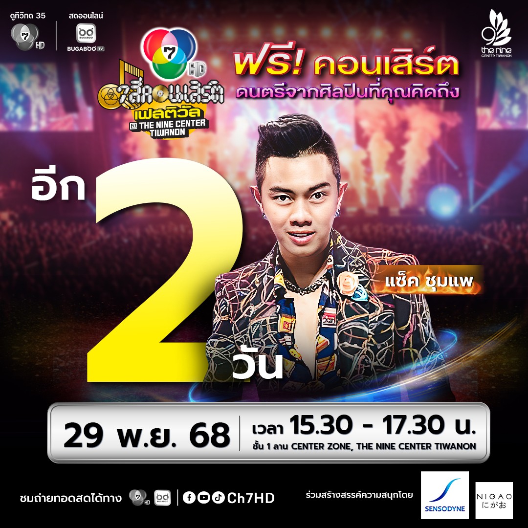 อีก 3 วันเจอกัน 📅 : วันเสาร์ที่ 29 พ.ย.นี้พบกับ แซ็ค ชุมแพ, ป๊ายปาย โอริโอ้ และ พิ้งค์พลอย ปภาวดี🕒 : เวลา 15.30 น. เป็นต้นไป📍 : THE NINE CENTER TIWANON เข้าชมฟรี CR: FB.Ch7HD