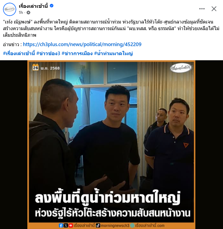 'เท้ง' นำทัพส้มลุยช่วย 'น้ำท่วมหาดใหญ่' แนะรัฐบูรณาการทุกหน่วย