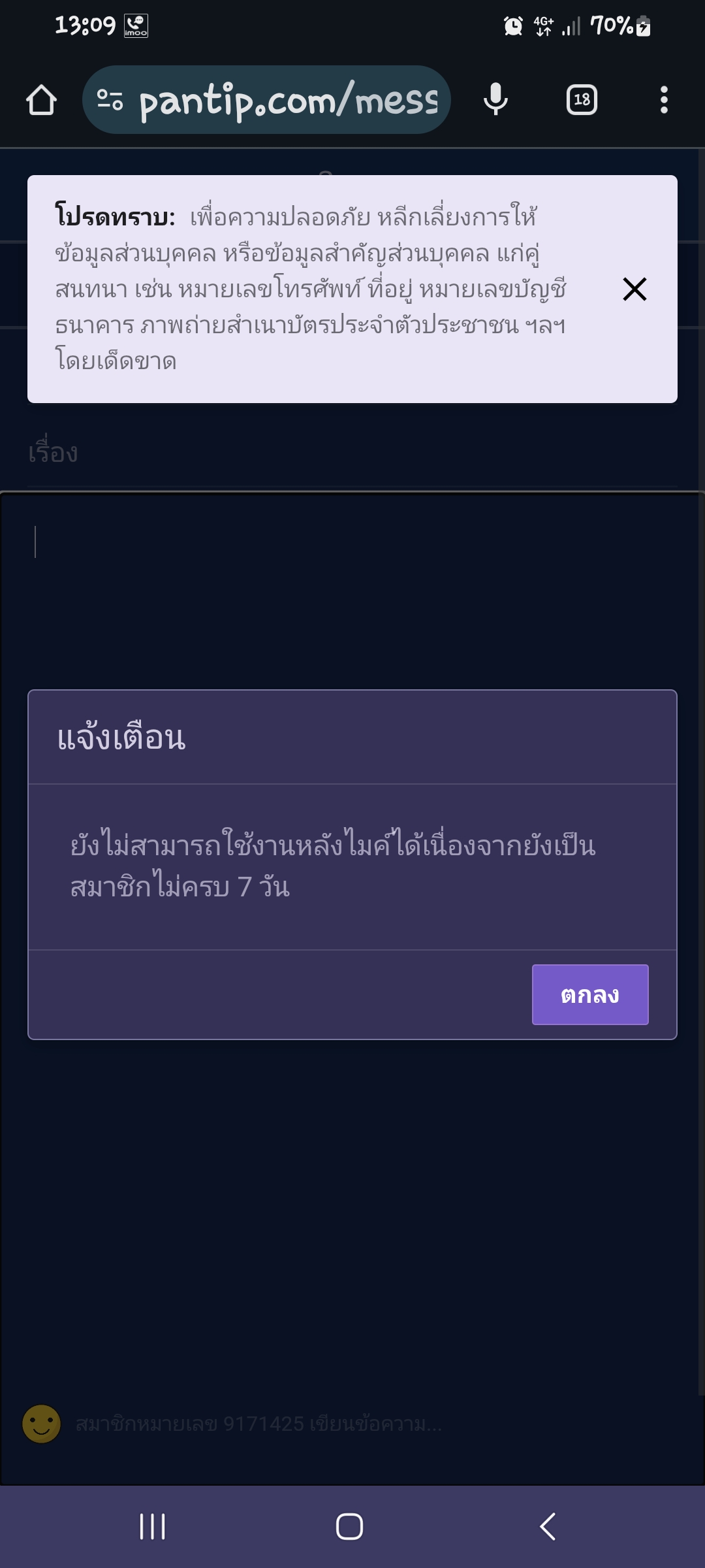 ถึงน้องฟ้า ดีแทต มันทักหาหลังไมค์ไม่ได้นะคะ รบกวนติดต่อหลังไมค์มาก่อนค่ะ