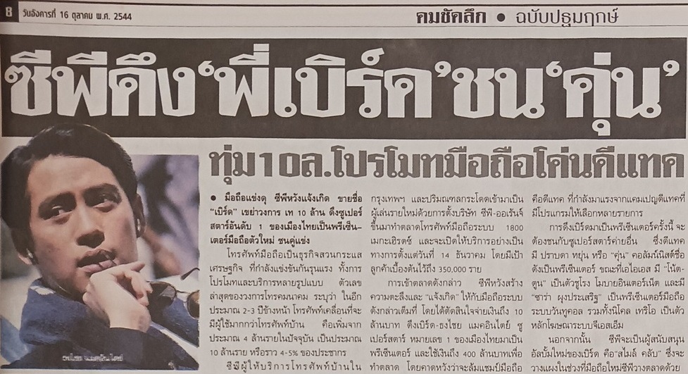 รื้อข่าวเก่า 2001 : "กลุ่มซีพี" ทุ่ม 10 ล้าน ทาบ "เบิร์ด" พรีเซ็นเตอร์ระบบมือถือ!!?