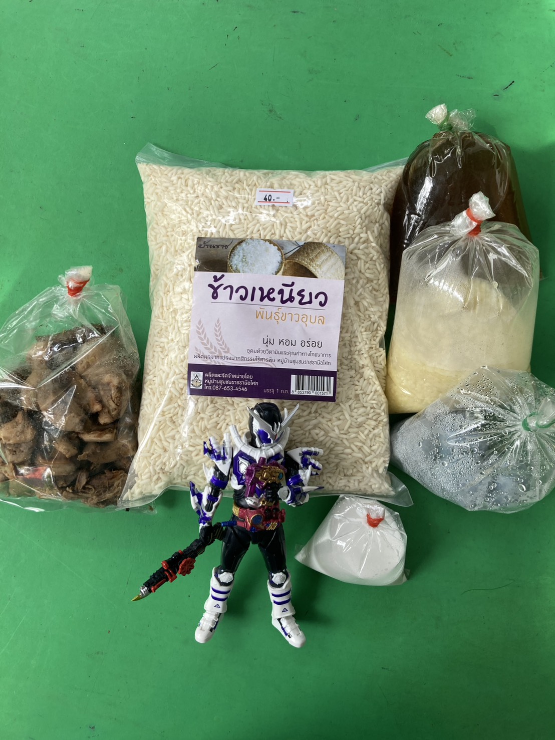แวะไปซื้อของกินที่ชมรมมังฯ มีขาเห็ดคั่ว ข้างฟางเปียก บัวลอยน้ำขิงงาดำ เต้าหู้ดอยลืมถ่ายภาพ ข้าวเหนียวจริงๆมีหลายพันธุ์