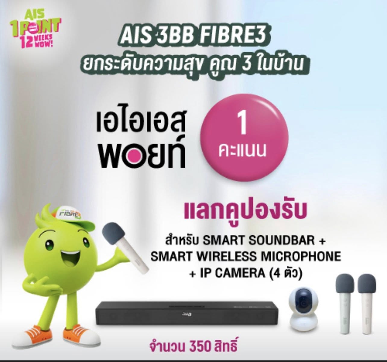 #1 AIS Point แลกคูปองรับ ชุดยกระดับความสุข x3 ในบ้าน จำนวน 350 สิทธิ์ SMART SOUNDBAR + SMART WIRELESS MICROPHONE + IP CAMERA (4ตัว) เก็บคูปอง เวลา 10:00 – 10:30 น.วันละ 50 สิทธิ์ หรือจนกว่าสิทธิ์จะเต็ม