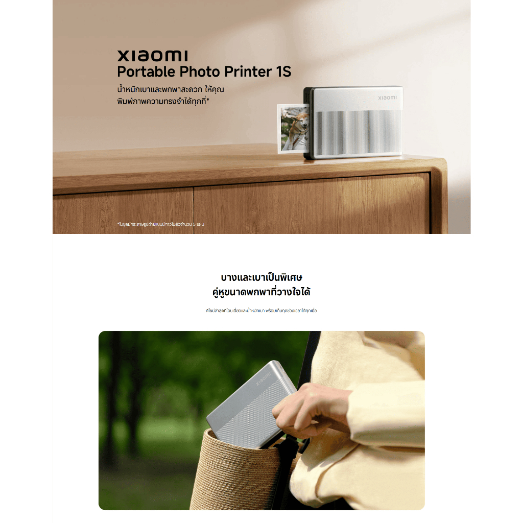 สายถ่ายรูปที่เก็บแต่ในมือถือ ลองเปลี่ยนมาเก็บโมเมนต์เป็นรูปจริงด้วย เครื่องปริ้นรูปพกพา Xiaomi 1S รุ่นเล็กที่พกง่าย น้ำหนักประมาณ 180 กรัม ใช้เทคโนโลยี ZINK ไม่ต้องเปลี่ยนหมึก ความละเอียด 313 x 512dpi พิมพ์สติ๊กเกอร์ขนาด 2 x 3 นิ้วได้ในประมาณ 45 วินาทีต่อแผ่น เชื่อมต่อผ่าน Bluetooth 5.2 จากสมาร์ทโฟนหรือแท็บเล็ตได้สบาย ๆ 📱