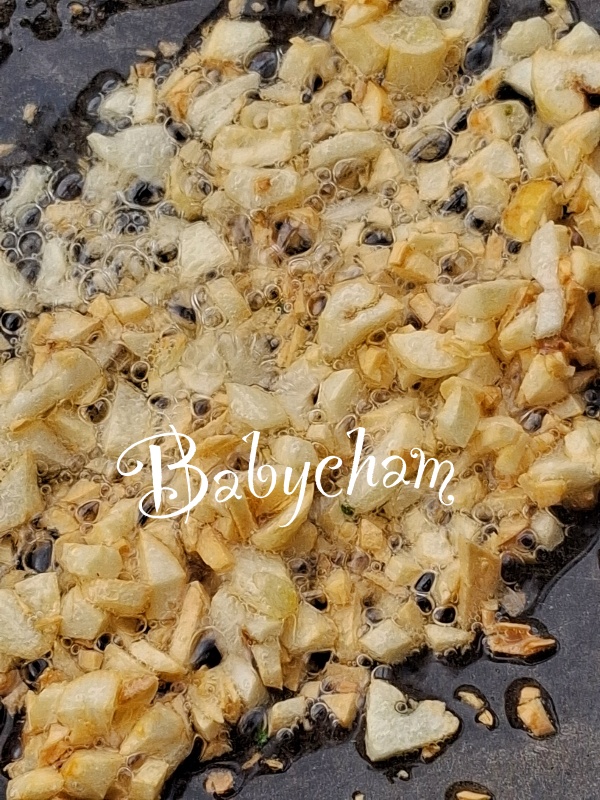 กระเทียมสับเจียวก่อนเลยค่ะ