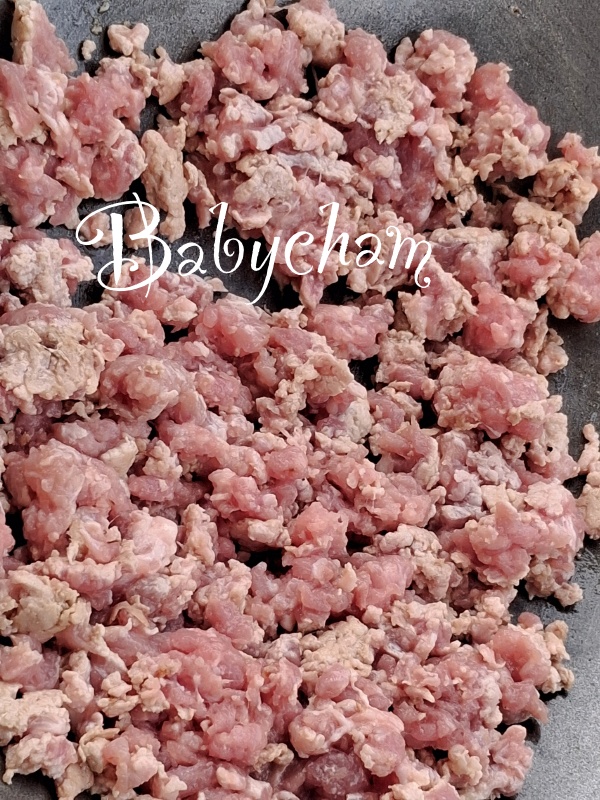 1. หมูสับ 500 กรัม แม่เปปใช้แบบติดมัน+เนื้อล้วน