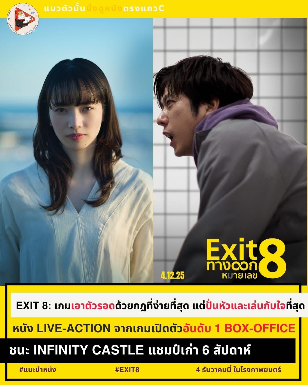 EXIT 8: เกมเอาตัวรอดด้วยกฎที่ง่ายที่สุด แต่ปั่นหัวและเล่นกับใจที่สุด หนัง live-action จากเกมเปิดตัวอันดับ 1 Box-Office ชนะ Infinity Castle แชมป์เก่า 6 สัปดาห์