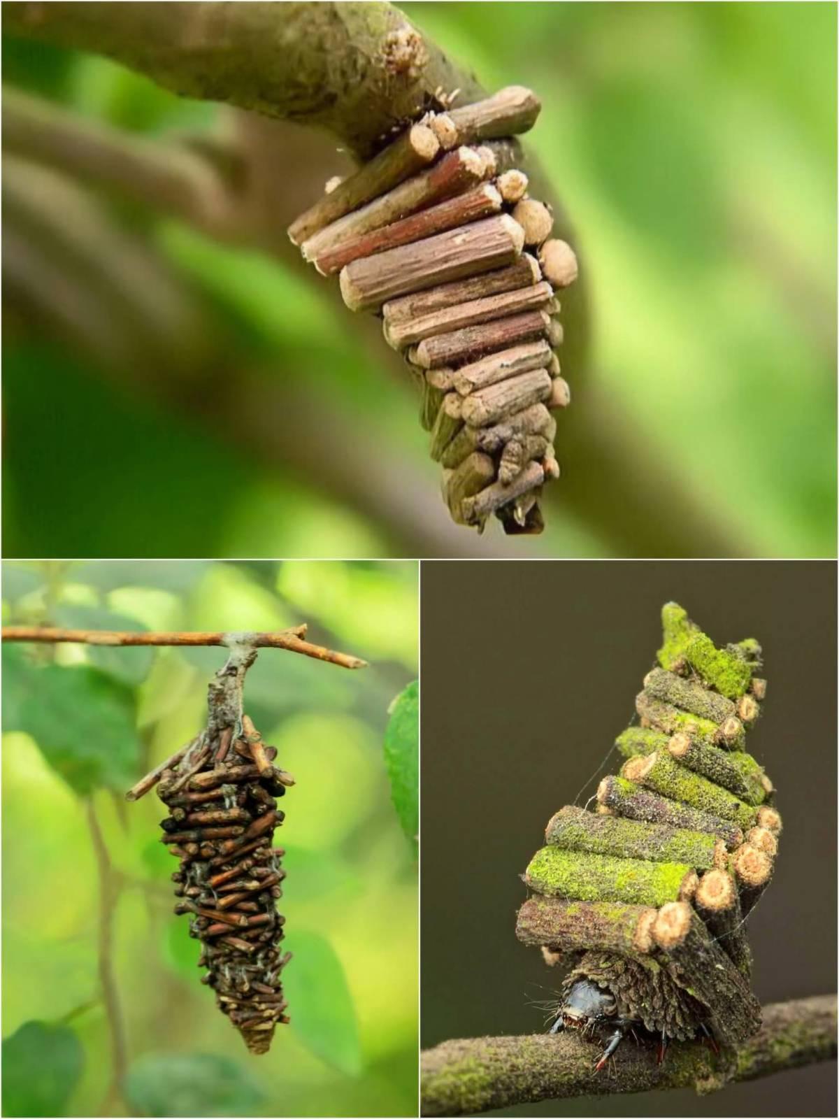 ตัวอ่อนจะใช้เส้นใยไหมที่ผลิตออกมามายึดวัสดุเหล่านี้เข้าด้วยกันจนเป็นท่อหุ้มลำตัวที่อ่อนนุ่ม โดยเหลือเพียงส่วนหัวและขาคู่หน้าเท่านั้นที่ยื่นออกมาเพื่อใช้ในการเคลื่อนที่ กินอาหาร และเก็บวัสดุเพิ่มเติม