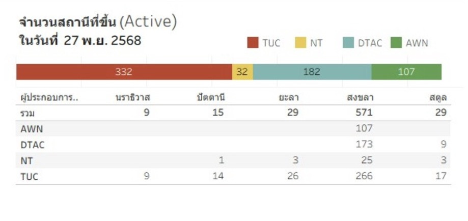 • AWN ล่าสุดกระทบ 262 สถานีฐาน ตอนนี้ active แล้ว 107 สถานีฐาน