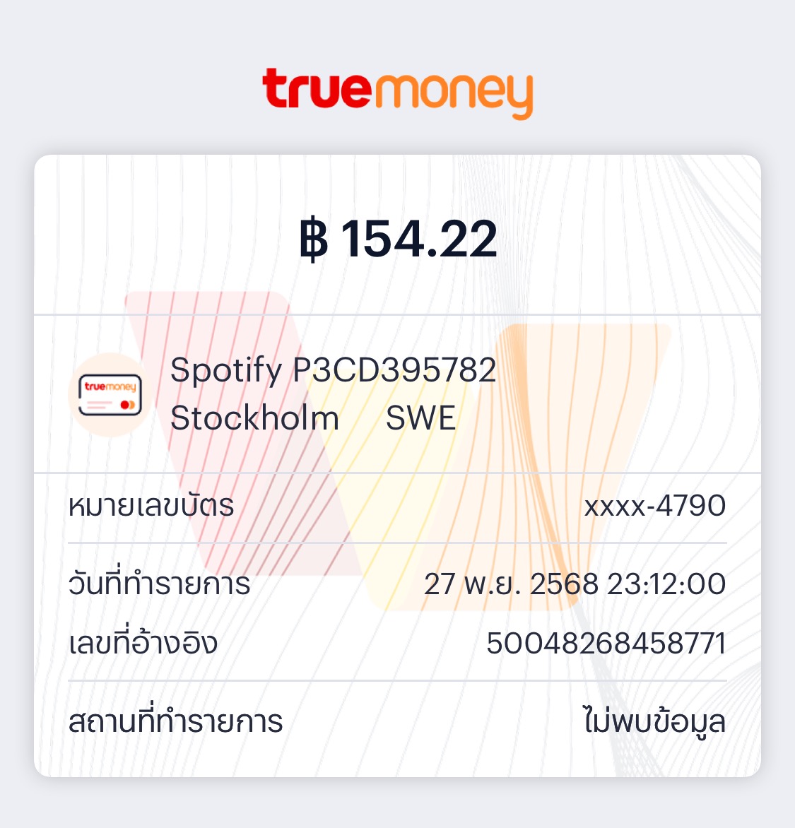 โดยหักเงินจาก spotify TrueMoney wallet ขอเงินคืนยังไง