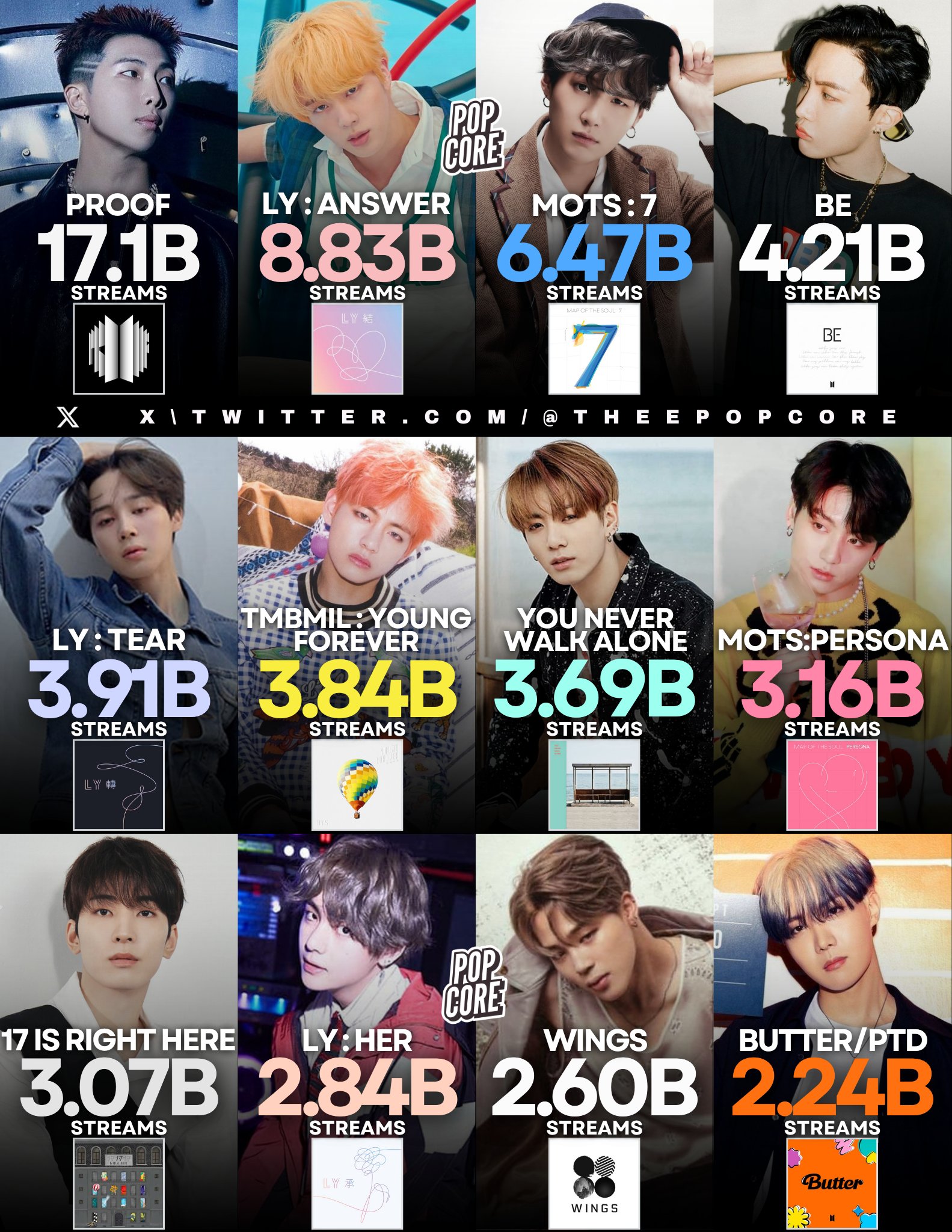 Most streamed projects by Male K-pop groups on Spotify (excluding Japanese releases), of all time: