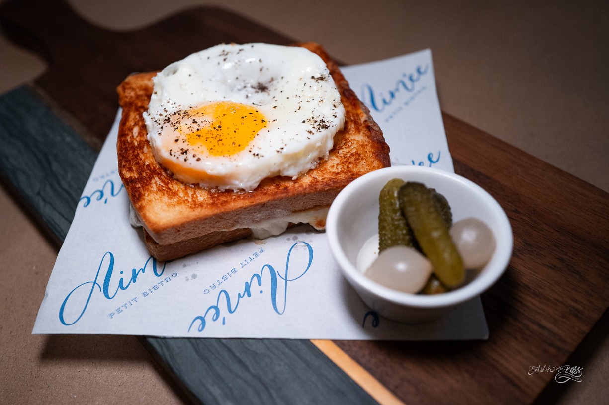 Classic Croque Madame แซนด์วิชหน้าเปิดตำรับฝรั่งเศส ขนมปังอบชีสสอดไส้ปารีสเซียงแฮม ท็อปด้วยไข่ดาวแบบ Sunny side up 🍳 ที่ไข่แดงยังไม่สุก ความฟินอยู่ที่รสชีส