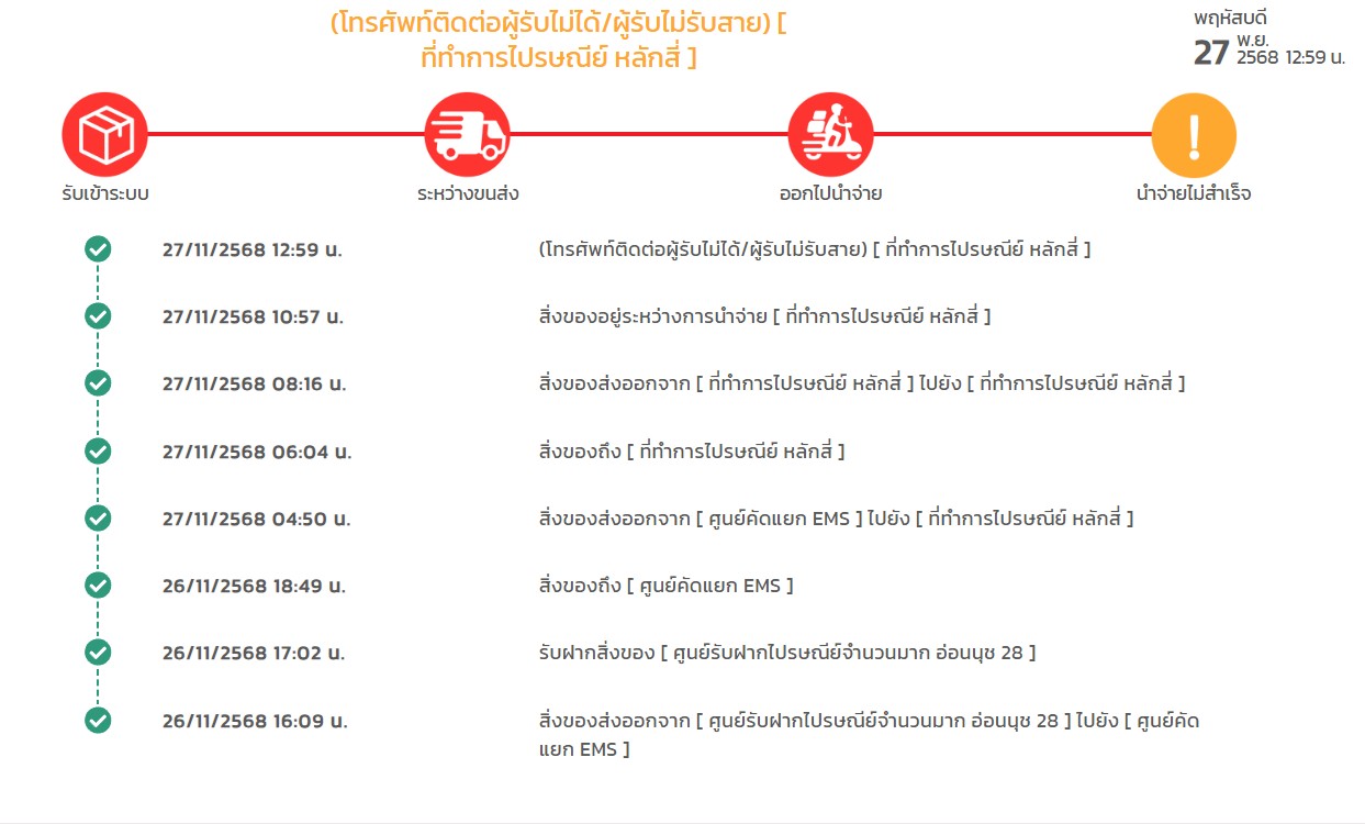 ไปรษณีย์ไทย สาขา อ่าวอุดม ศรีราชา ชลบุรี ทำงานแบบใดคะ พัสดุขึ้นจ่ายไม่สำเร็จมาสองรอบแล้ว สถานะติดต่อผู้รับไม่ได้ คือไรก่อน นั่งรอโทรศัพท์ทั้งวันไม่มีห่าเหวตัวไหนมันโทรมาเลย แบบนี้มาสองรอบแล้ว คือยังไง