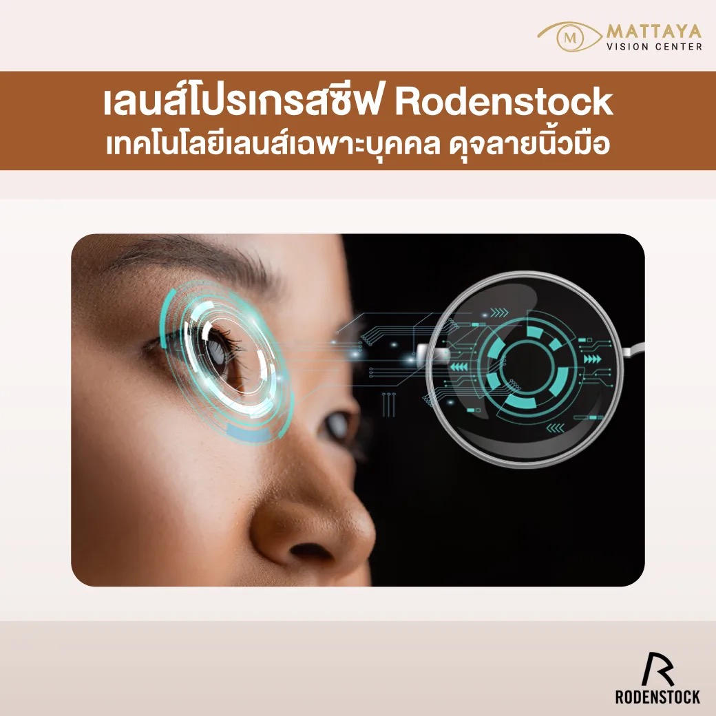 ด้วยเทคโนโลยีเฉพาะบุคคลดุจลายนิ้วมือของผู้สวมใส่ เลนส์โปรเกรสซีฟ Rodenstock ได้สร้างแบบจำลองดวงตาไบโอเมตริกที่ใกล้เคียงกับดวงตาของผู้สวมใส่มากท่ีสุดร่วมกับเทคโนโลยีปัญญาประดิษฐ์ (AI) มาใช้ในการผลิตเลนส์ จากการระบุข้อมูลของดวงตาผู้สวมใส่ไปยังอัลกอริทึม AI ขั้นสูง ให้เลนส์โปรเกรสซีฟมีความแม่นยำระดับสูง