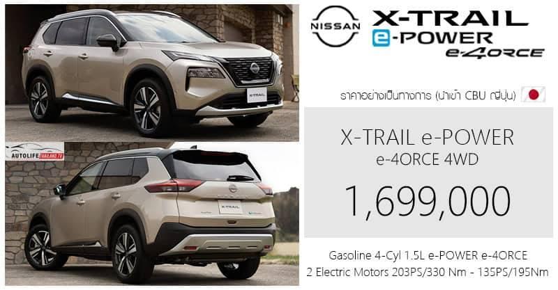 Nissan X-Trail e-POWER e-4ORCE 4WD ราคาอย่างเป็นทางการ : 1,699,000 บาท (นำเข้า CBU ญี่ปุ่น)