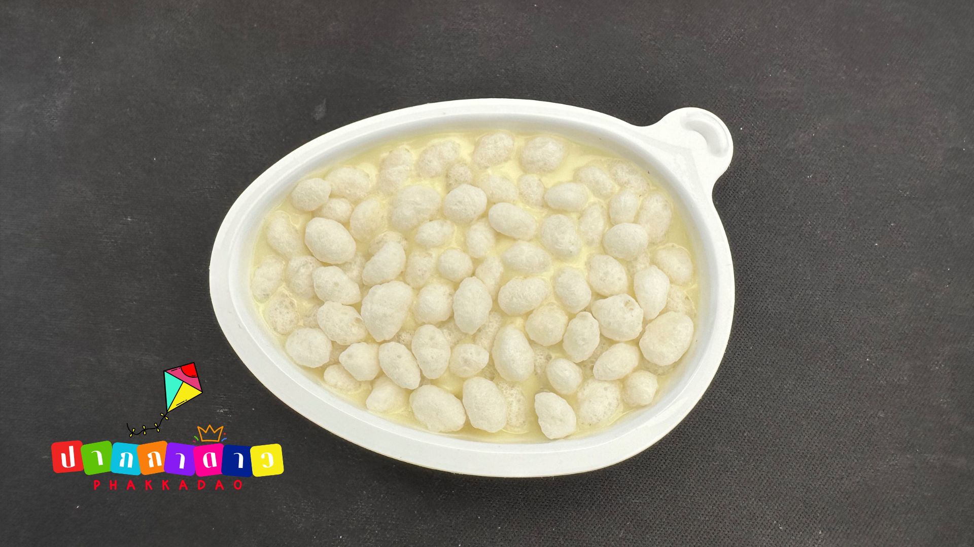 ไม่มีของเล่นดึงดูดใจเหมือนรุ่นพี่ Kinder Joy ด้วยนะเออ วัดกันที่รสชาติล้วนๆ เลยงานนี้ ด้วยความอยากรู้อยากเห็น (และเห็นว่าราคาแค่ 20 บาท) ก็เลยจัดมาลองสัก พลิกด้านหลังตรงสติ๊กเกอร์จะเป็นช้อนกระดาษนะ ส่วนด้านหน้าจะเป็นส่วนขนม เปิดมาก็จะเจอกับ ครีมนมสีขาวข้นๆ ที่มีเม็ดข้าวพองอบกรอบ (Rice Crispy) โรยอยู่ทั่วเลย หน้าตาดูมินิมอลมาก กลิ่นหอมนมๆ ช็อกโกแลตๆ