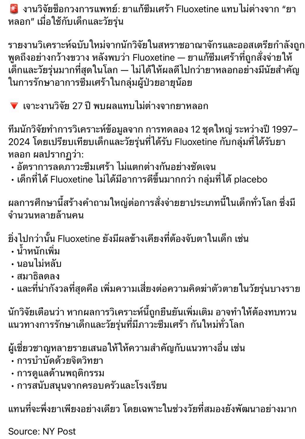 สรุปยา Fluoxetine เป็นยาหลอก ตามข่าวไหมคะ