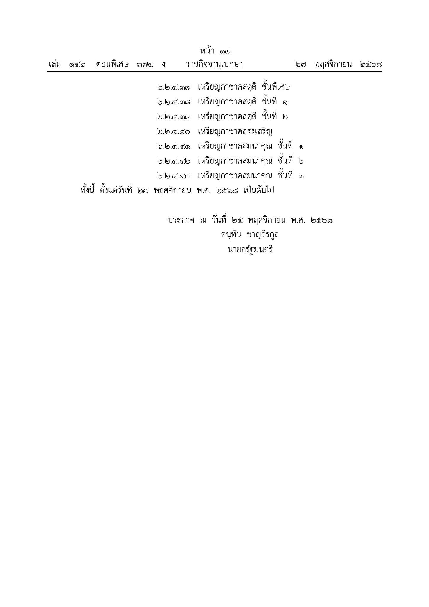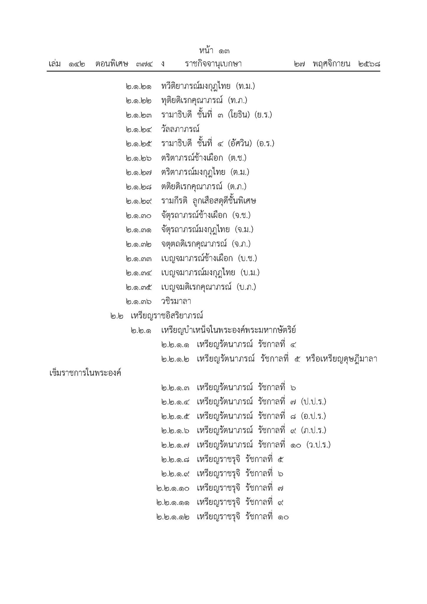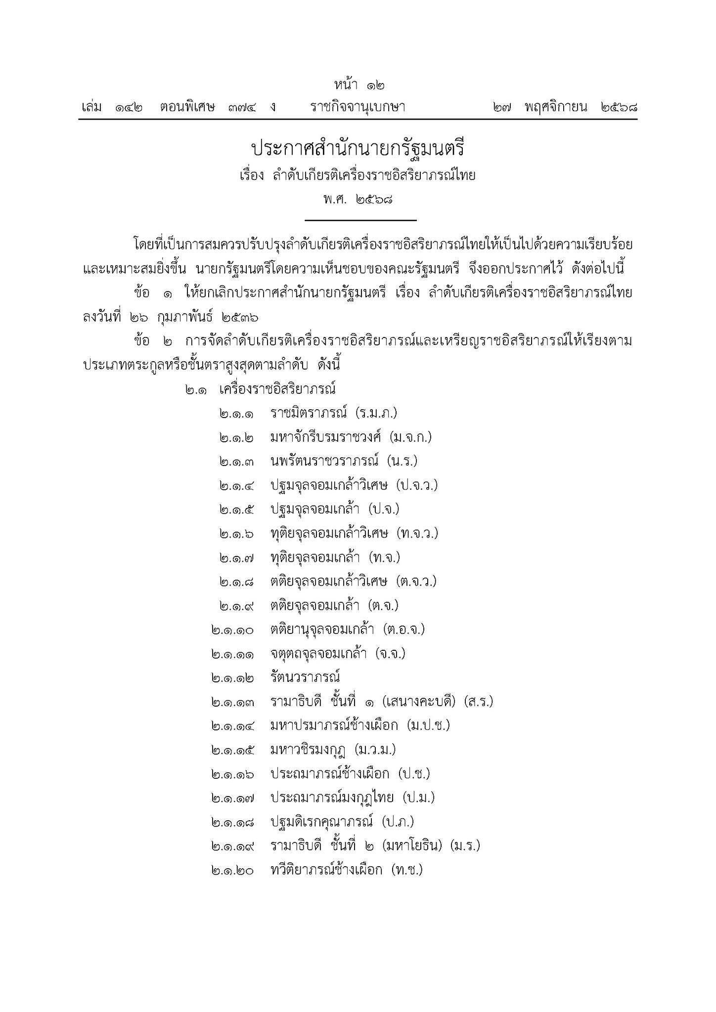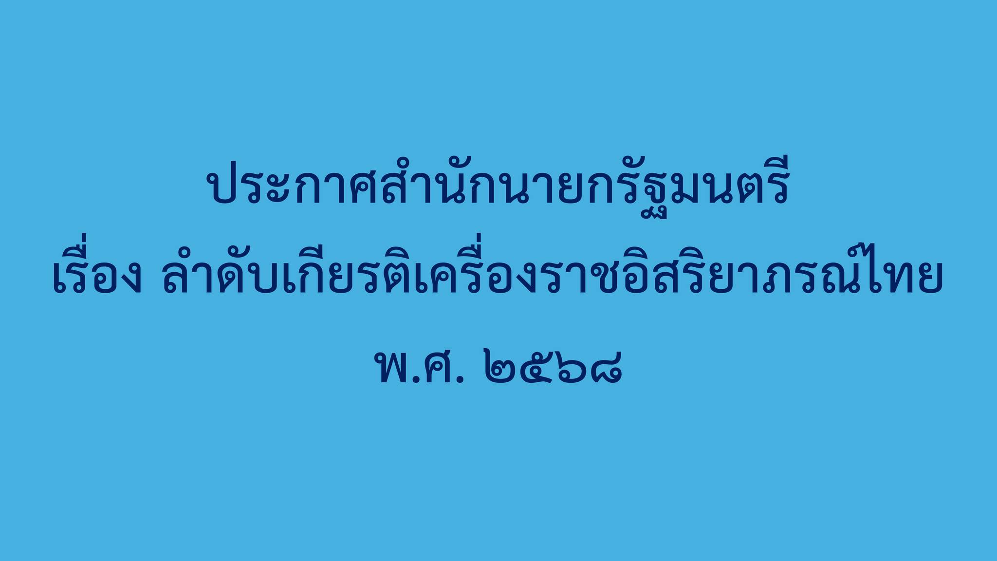 📌 ราชกิจจานุเบกษา เผยแพร่ ประกาศสำนักนายกรัฐมนตรี เรื่อง “ลำดับเกียรติเครื่องราชอิสริยาภรณ์ไทย พ.ศ. ๒๕๖๘”