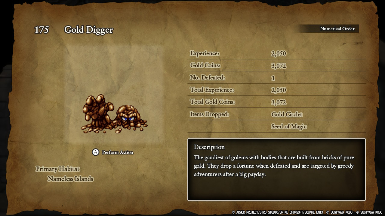 3.แล้วให้เดินรอบๆแถวนั้นหรือใช้ Abilities ชื่อ Whistle (くちぶえ) ผิวปากไปเรื่อยๆจนกว่าจะเจอมอนสเตอร์ชื่อ Goodybag (おどるほうせき) Gold Golem (ゴールドマン) และ Gold Digger (おうごんまじん) ซึ่งจะได้เงินคนละ 1990 G 3072 G และ 404 G ตามลำดับ รวมกันเป็น 5466 G