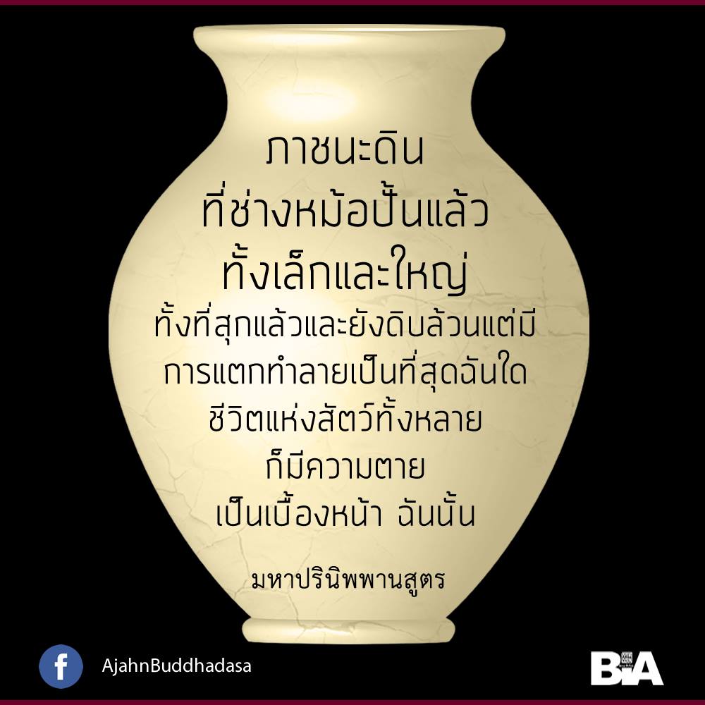 ภาชนะดินที่ช่างหม้อทำแล้ว ล้วนมีความแตกเป็นที่สุด ฉันใด, ชีวิตของสัตว์ทั้งหลาย ก็ฉันนั้น