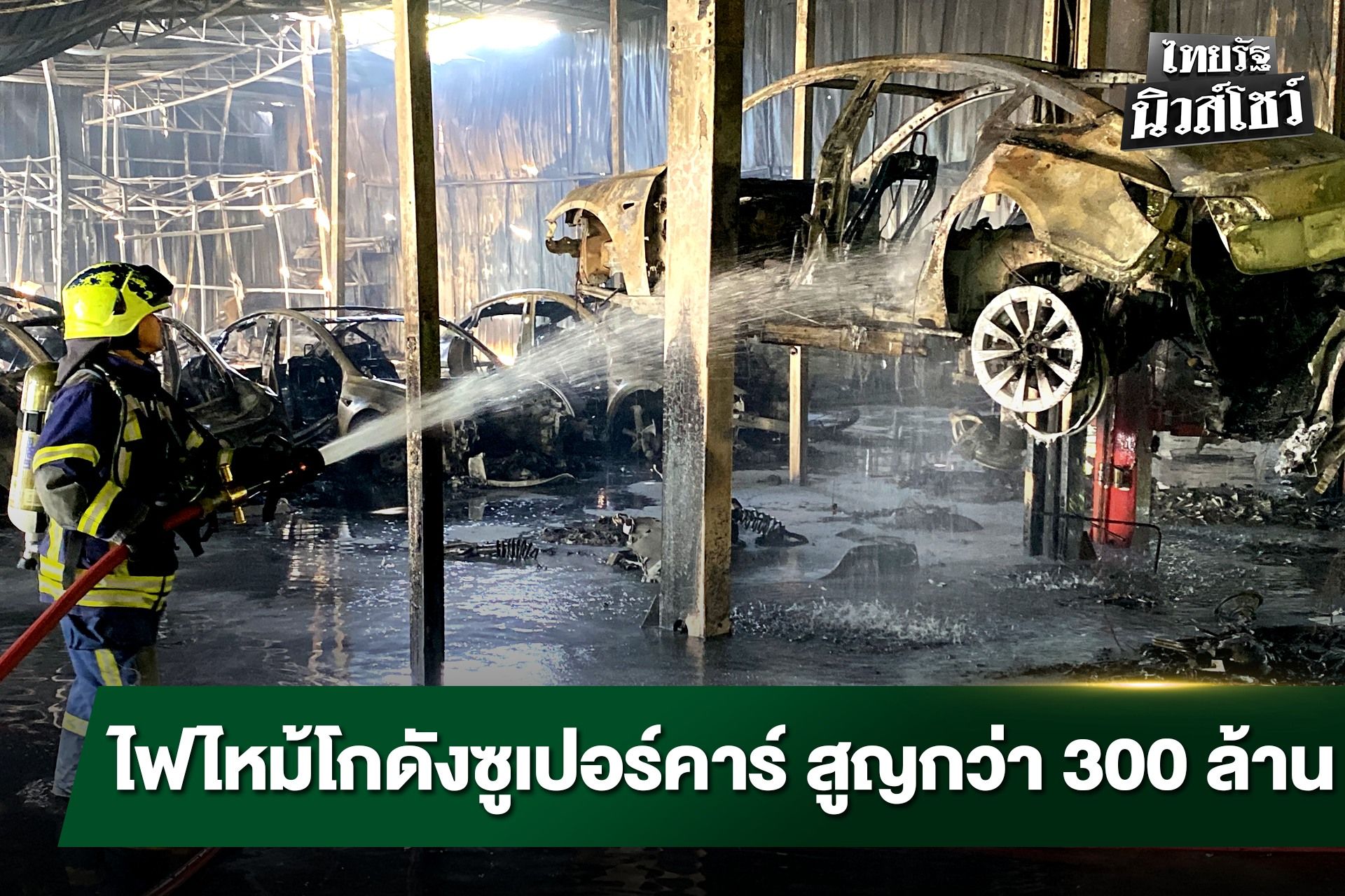 ไฟไหม้โกดังเก็บซูเปอร์คาร์วอด สูญกว่า 300 ล้าน คาดไฟฟ้าลัดวงจร