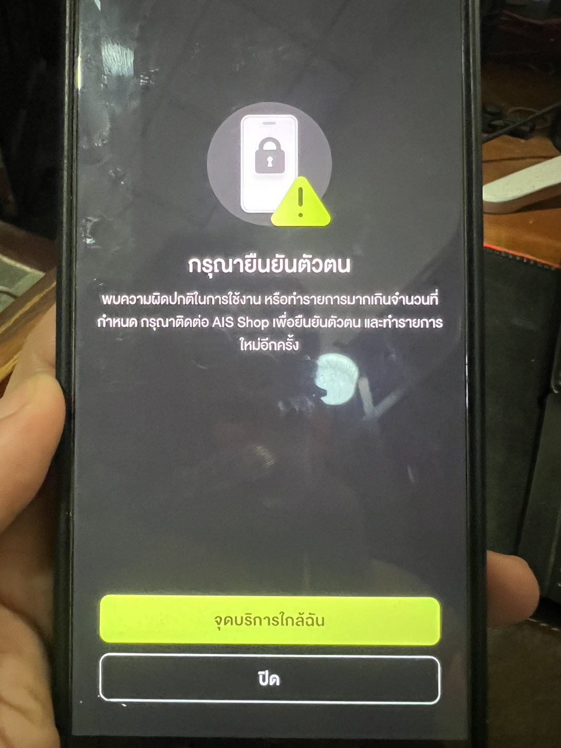 ผมเข้าแอพ MY AIS เเล้วขึ้นข้อความดังกล่าวเเล้วขึ้นเเบบนี้