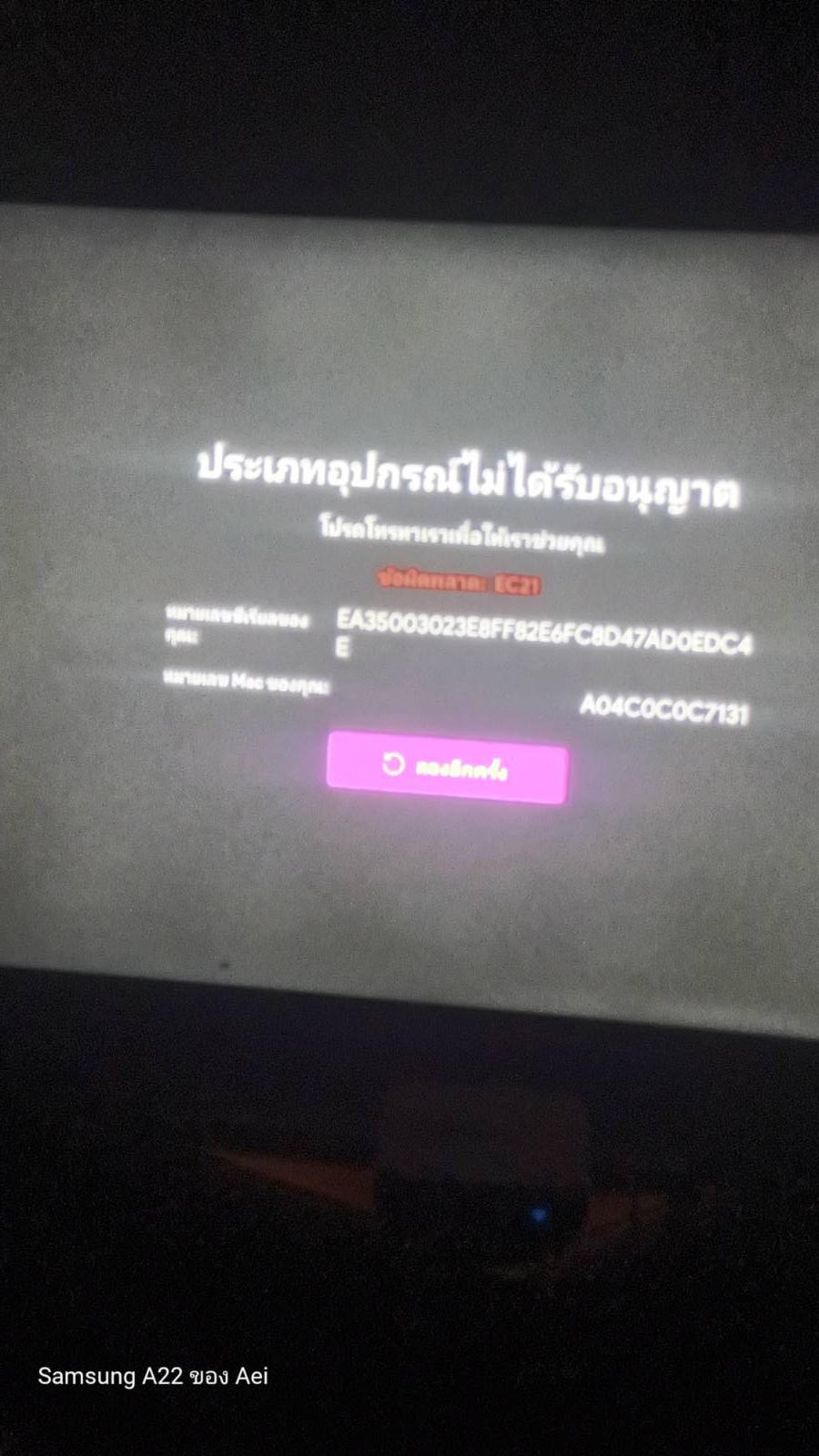 ขึ้นว่า ประเภทอุปกรณ์ที่ไม่ได้ อนุญาติ