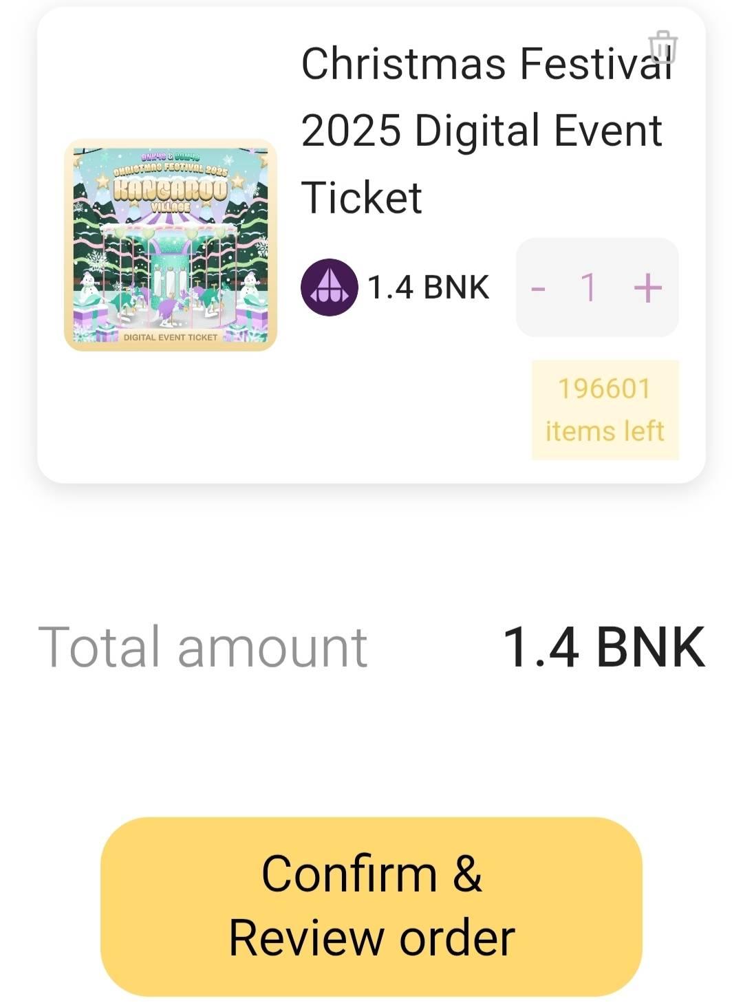 #BNK48CGM48KangarooVillage BNK48 & CGM48 Christmas Festival 2025 Digital Event Ticket: 100 THB / 1.4 BNK Token ใช้สำหรับร่วมกิจกรรมต่าง ๆ ภายในงาน วันที่ 19-21 ธันวาคม @ MCC Hall, The Mall