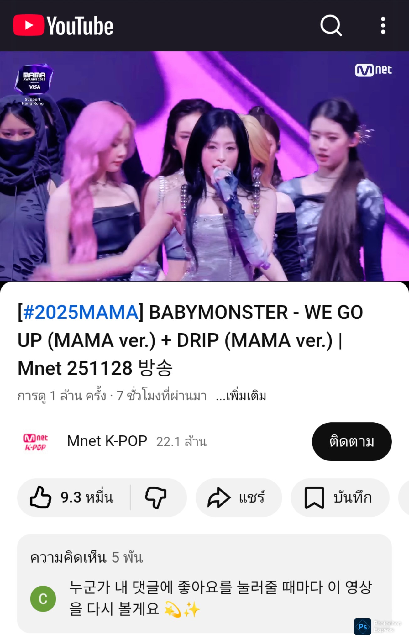 เป็นอย่างยิ่งต่อทาง Mnet เองอย่างมหาศาลเลย รอลุ้น คราวนี้เรามาดูการแสดงยอดวิว อันดับ 1 คือ BABYMONSTER อยู่ที่ 1 ล้านวิว กับ 9.3 หมื่นไลค์